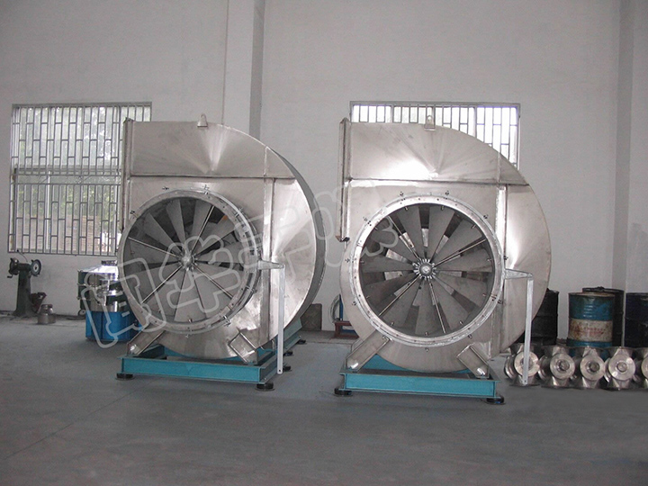 (1)在旋轉霧化器的配套設計中,要用對數螺旋蝸殼,使一邊進入蝸殼的熱風經蝸殼及內部的導風板均勻地進入塔內。